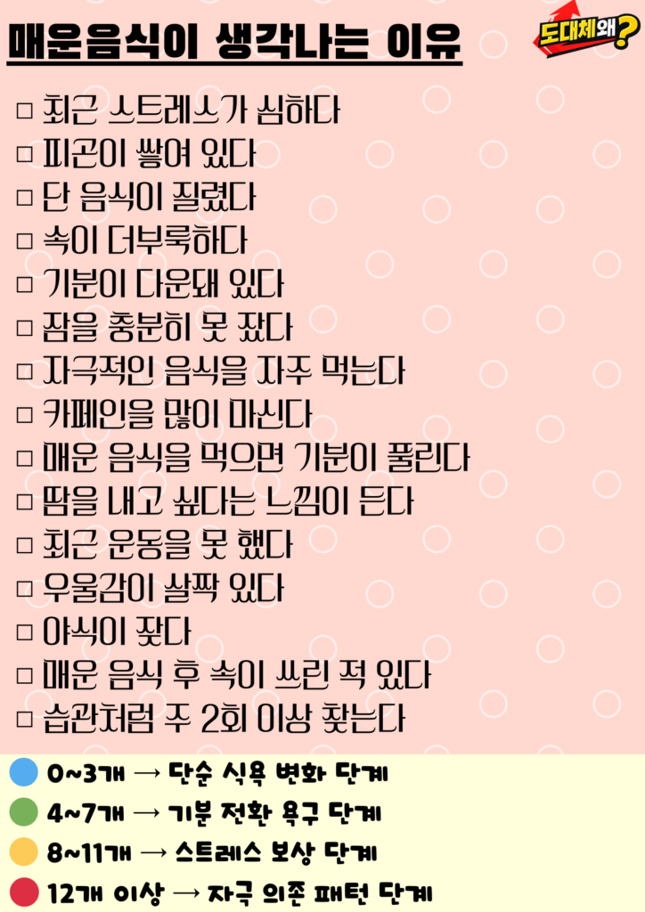 평소보다 훨씬 자극적인 음식을 찾게 되었습니다.