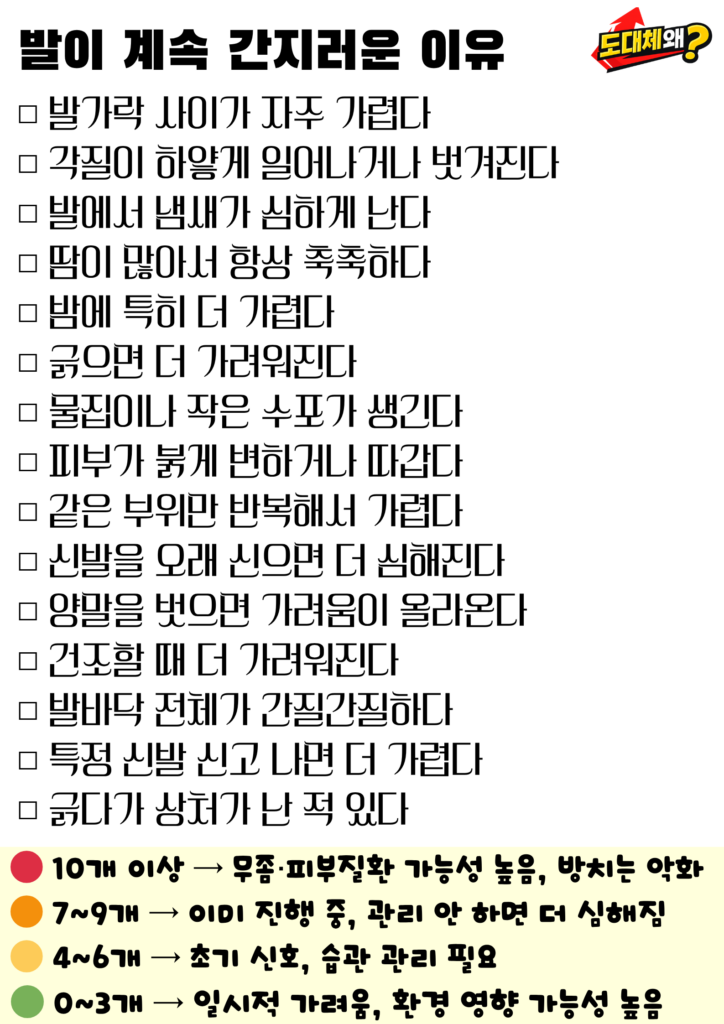 발이 계속 간지러우면 단순히 “건조해서 그런가” 하고 넘기기 쉽습니다.