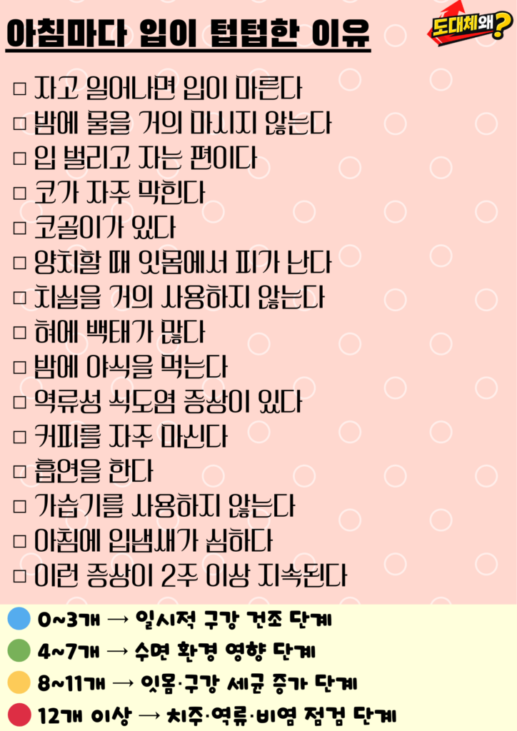 아침 입이 텁텁한 이유를 정리해보겠습니다.