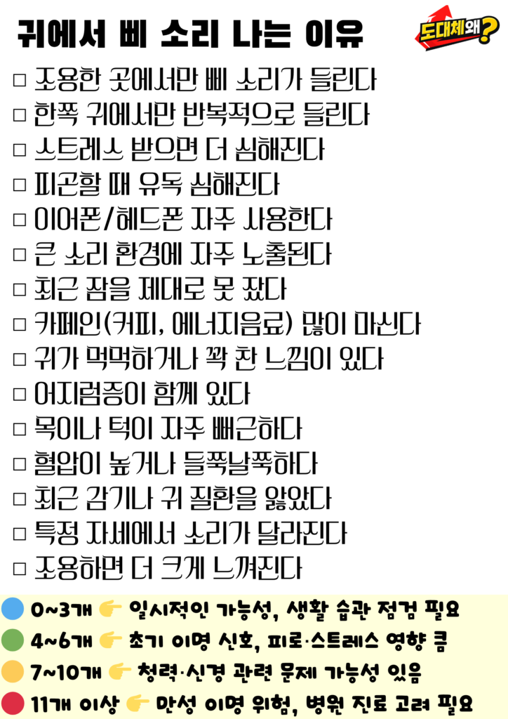 이 글에서는 귀에서 삐 소리가 나는 이유를 일상적인 관점에서 쉽게 풀어보고, 어떤 상황에서 주의가 필요한지도 함께 알려드리겠습니다.