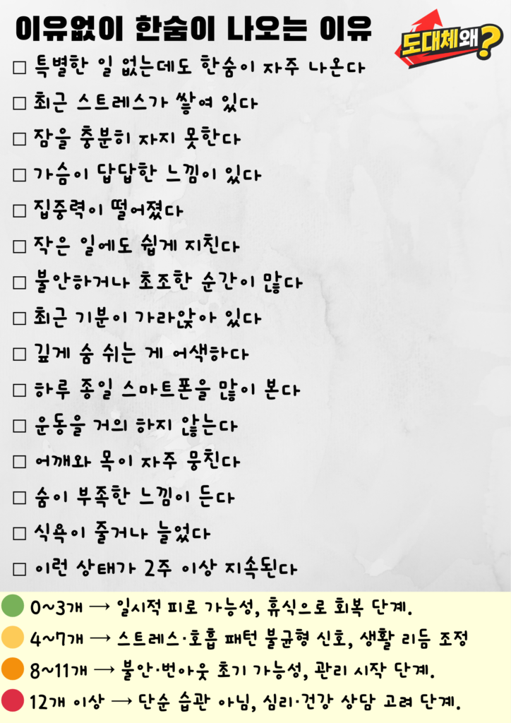 오늘은 이유 없이 한숨이 나오는 대표적인 원인들을 정보 중심으로 정리해보겠습니다.